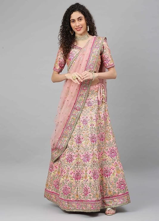 AG Clothing Women’s Silk Semi Stitched Lehenga Choli With Dupatta | Heavy Embroidery Pattern | Traditional, Wedding, Ethnic Wear Lehenga (ZC-m7108-Pink)