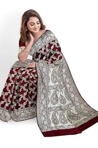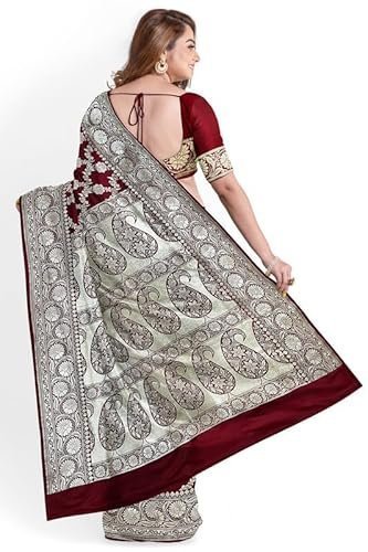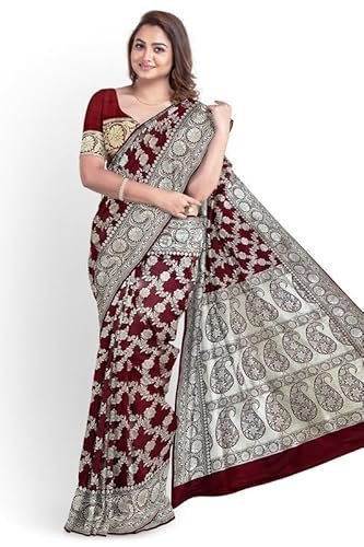 AKAYA KASHI Women's Banarasi Silk Jangla Saree With Unstitched BlouseAKAYA KASHI Women’s Banarasi Silk Jangla Saree With Unstitched Blouse