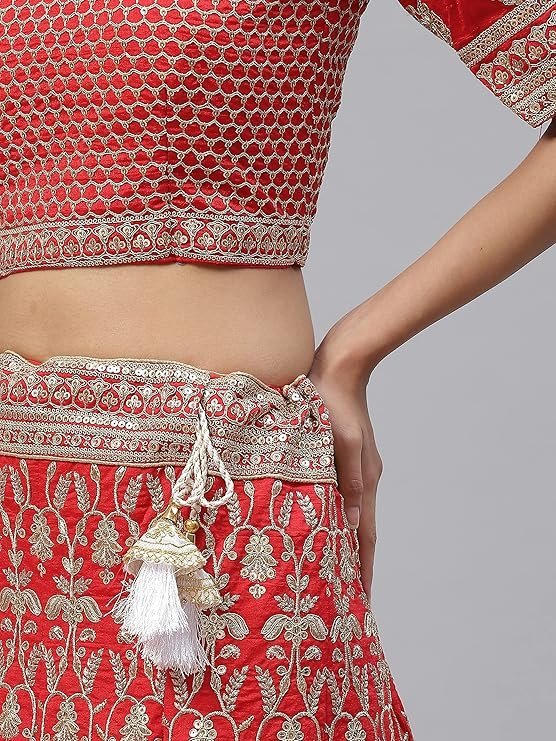 Divine Exim Women’s Silk Semi Stitched Lehenga Choli With Unstitched Blouse Piece (Red_Free Size_CLVilla-90)