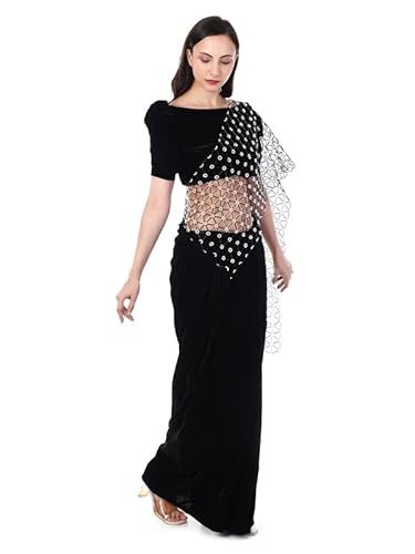FABBIT Women’s Velvet Designer Black Hand Bead Embroidery Pallu Elegant Ready Wear Saree