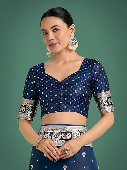 Customizable Blouse Piece & Fit: The blouse piece comes unstitched, allowing you to tailor it as per your preferred neckline, sleeve length, and fit, ideal for creating a personalized style. High-neck or boat-neck patterns look classy with ethnic sarees.