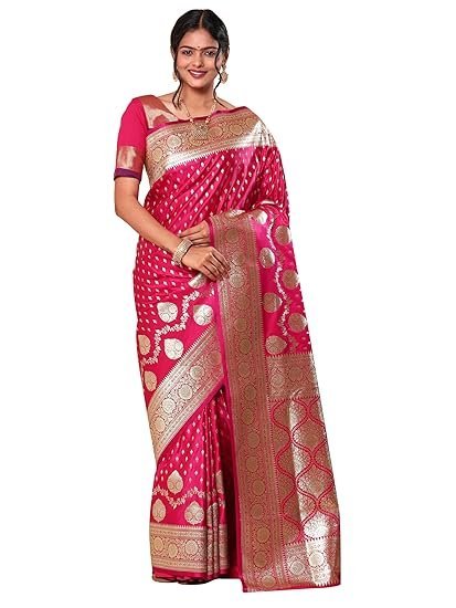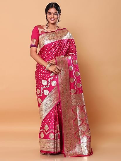 HerClozet Women’s Banarasi Katan Silk Gold Zari Saree-6.3 Mtr(Dark Pink;Golden)