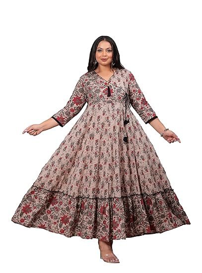 LABULY Plus Size Women Pure Cotton Printed Anarkali KurtaLABULY Plus Size Women Pure Cotton Printed Anarkali Kurta
