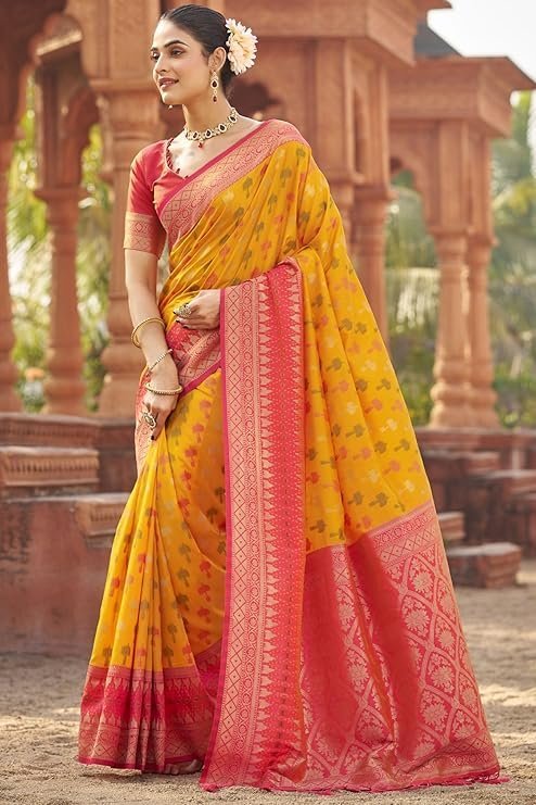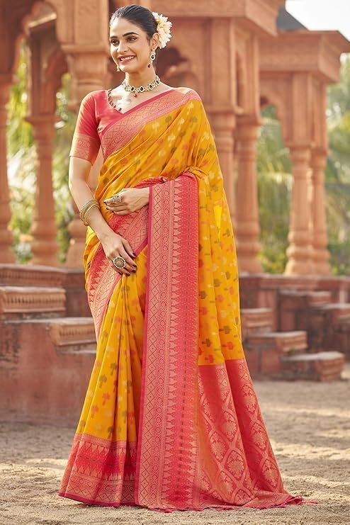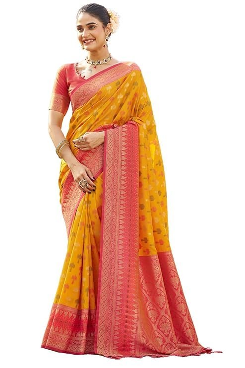 Other Details : {Soft Finished Comfortable To Wear and Easy To Take Fleets } {Size-Free Size} { Saree Is Not Transparent } Package Included: 1 Saree with 1 Blouse Piece