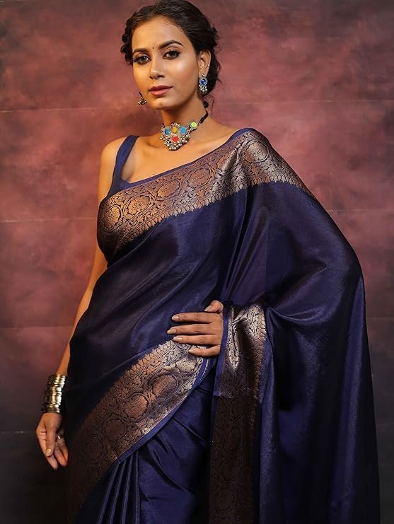 - Colour : Navy Blue II Bold and beautiful, this Banarasi Kanjivaram Zari Woven Soft Silk KING & QUEEN ATTRACTIVE silk color brocade saree is all about impactful presence.