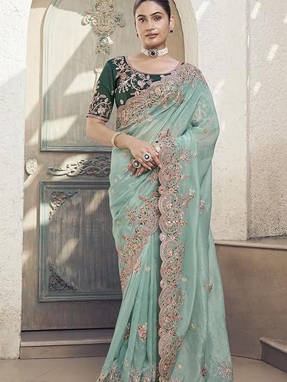 Suha Womens Satin Saree | Women’s Traditional Ethnic Saree With Attach Unstitch Blouse Piece