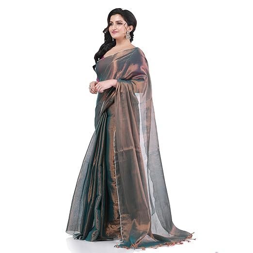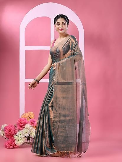 TANTLOOM Women’s Soft Solid Tissue Cotton Silk Handloom Cotton Silk Saree With Blouse Piece