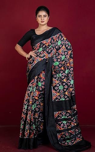 Experience the exquisite blend of traditional and contemporary with our Exclusive Madathasu Ikkat Pochampally Silk Saree. This saree, in royal purple, red, golden yellow, off white and bright green, showcases the intricate ikkat patterns of Madathasu, making it a unique addition to your wardrobe. Elevate your style with this one-of-a-kind piece. Color : Black, Red, Green, Yellow, Off White and Multicolored Fabric : Pure Silk ( Silk Mark Certified ) Technique : Kadwa Border Weaving Cluster : Telangana Length : Standard 5.5 mts approx. Blouse Piece :1mts approx. Care : Dry Clean Only Avoid bringing in contact with liquids especially perfumes. Change fold regularly, and store in pure cotton fabrics. Iron on Reverse. Do Not Bleach And Expose This Product To Excessive Heat And Sunlight For Long. Accessories : Blouses/Jewelry worn by the model are only for photo shoots and styling reference. Note:This product is handwoven and there might be slight irregularities in the weave. But that’s what adds to the charm of handwoven textile and makes it like none other.