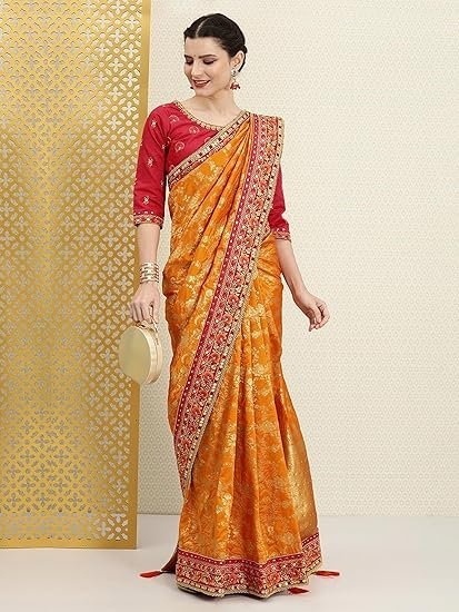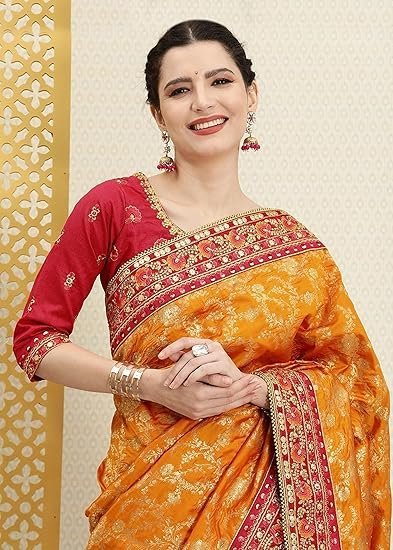 Color: Saree: Orange || Blouse: Red