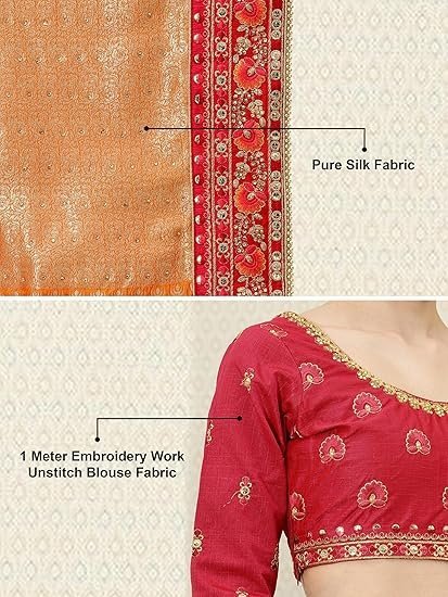 Package Contents: 1 Saree with Unstitch Blouse Piece, Blouse Fabric is attached with end of the saree only. Buyer have to cut blouse part from the saree. Stiching service will not be available. There might be color variation due to screen resolution and digital photography.