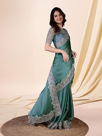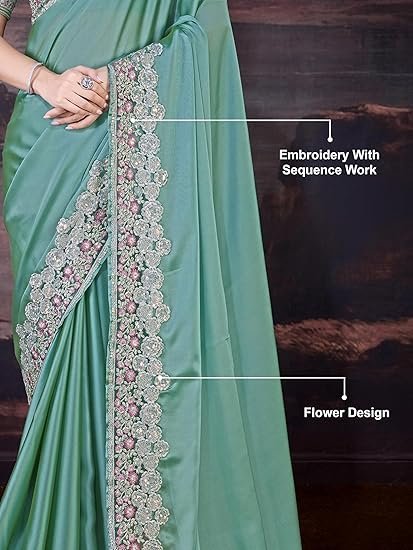 TRENDS Women’s Silk Embroidery Saree with Unstitched Blouse Piece