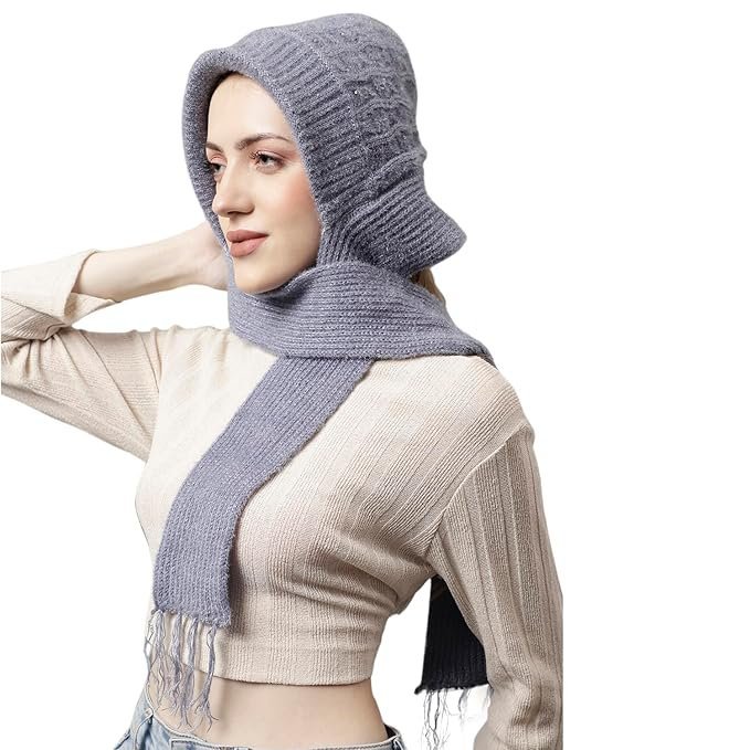 Weavers Villa Snow Proof Inside Fur Acro Wool Unisex Cap with Attached Neck Warmer Muffler Thick Fleece Lined Winter Cap for Men & Women (Free Size)