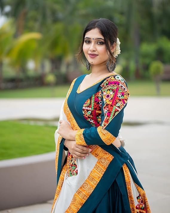 Women Muslin Cotton Printed With Real Mirror Work Lehenga Choli For Women with Dupatta Set Semi-stitched Lehenga || Free Size Available