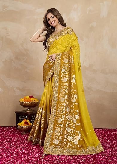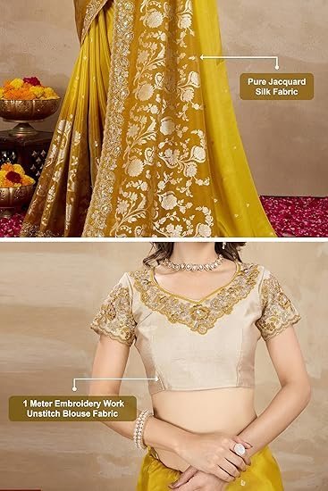 Women’s Jacquard Silk Embroidery Sequence Work Saree with Unstitched Blouse Piece