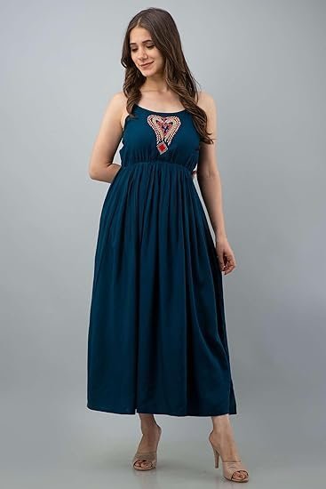 Women’s Rayon Sleeveless Embroidered Anarkali Kurti (Royal Blue)