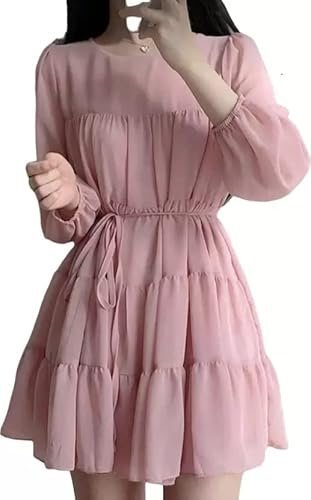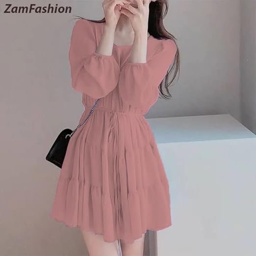 ZamFashion Women Pleated Blouses Dress Imported Georgette Three Fourth Sleeve Single Breasted Edge Dori Belt Dresses Streetwear Dress