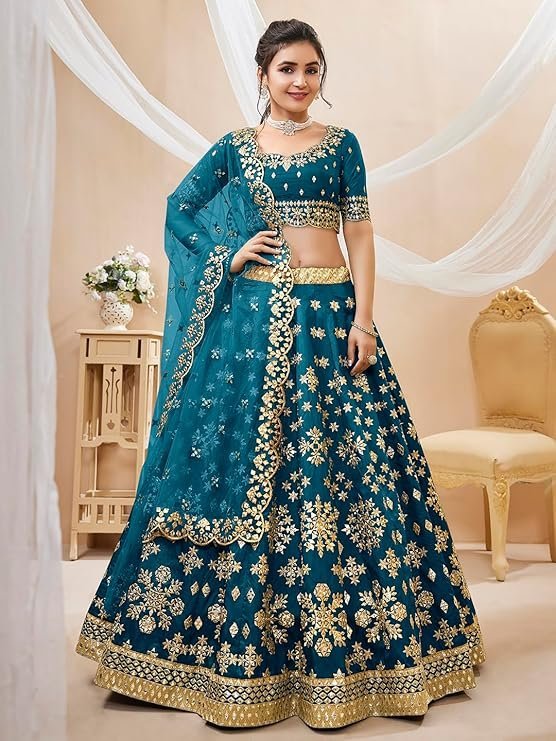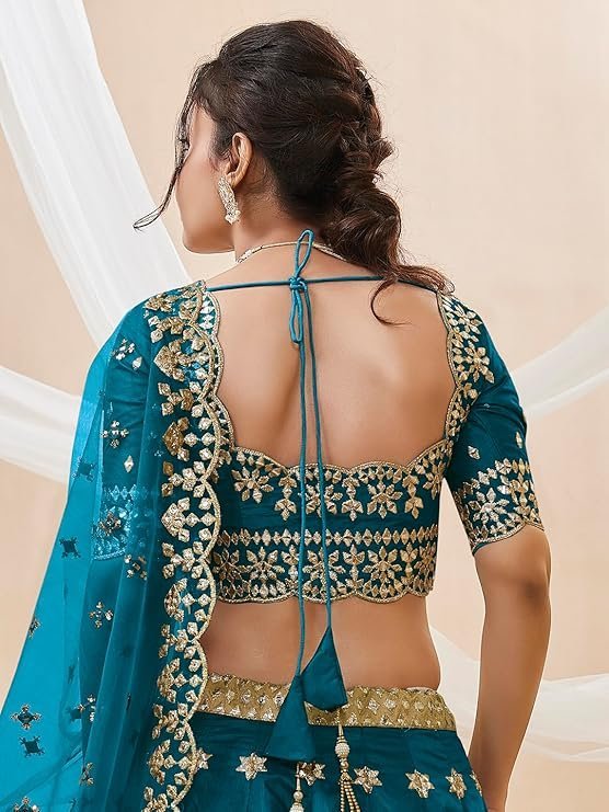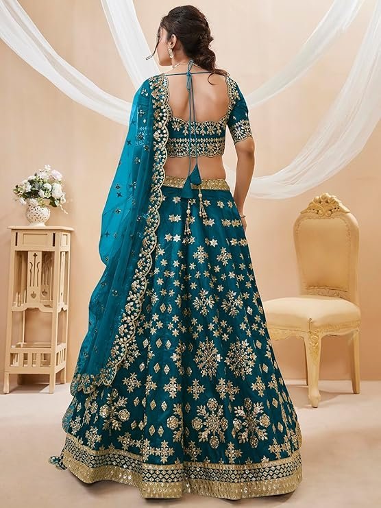 Zeel Clothing Art Women Silk ‘s Sequins Zari Embroidered Georgette Semi-Stitched Lehenga Choli Set With Dupatta (500-Wedding-Bridal-Latest-New-Stylish)