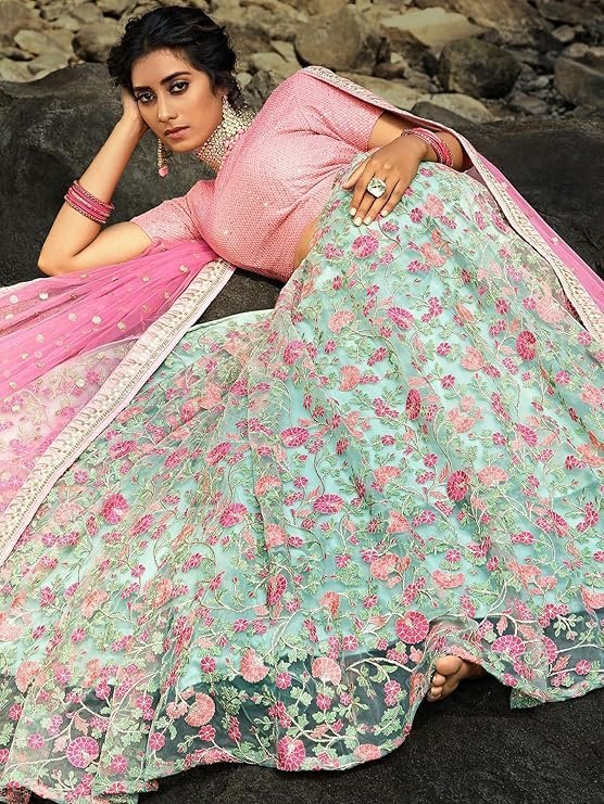 Zeel Clothing Women's Net Lehenga Choli Semi StitchedZeel Clothing Women’s Net Lehenga Choli Semi Stitched